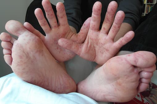 Most adults — but not all — have already had Hand Foot and Mouth and are not at risk. There are a few different strains of viruses that cause Hand Foot and Mouth though, so having had the illness once isn’t a guarantee. This leads many parents to ask, ‘Is hand foot and mouth disease contagious?’