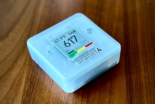 One of my favorite gadgets from the pandemic is the AraNet 4 CO2 monitor. I carry it with me whenever I am curious about an indoor space. This easy-to-use monitor gives a simple red-yellow-green reading of the CO2 level. At a green level (<1000 ppm) it is harder to transmit an airborne viral infection. At a red level (>1400 ppm) it is much easier to catch a virus if someone else in the room is sick.